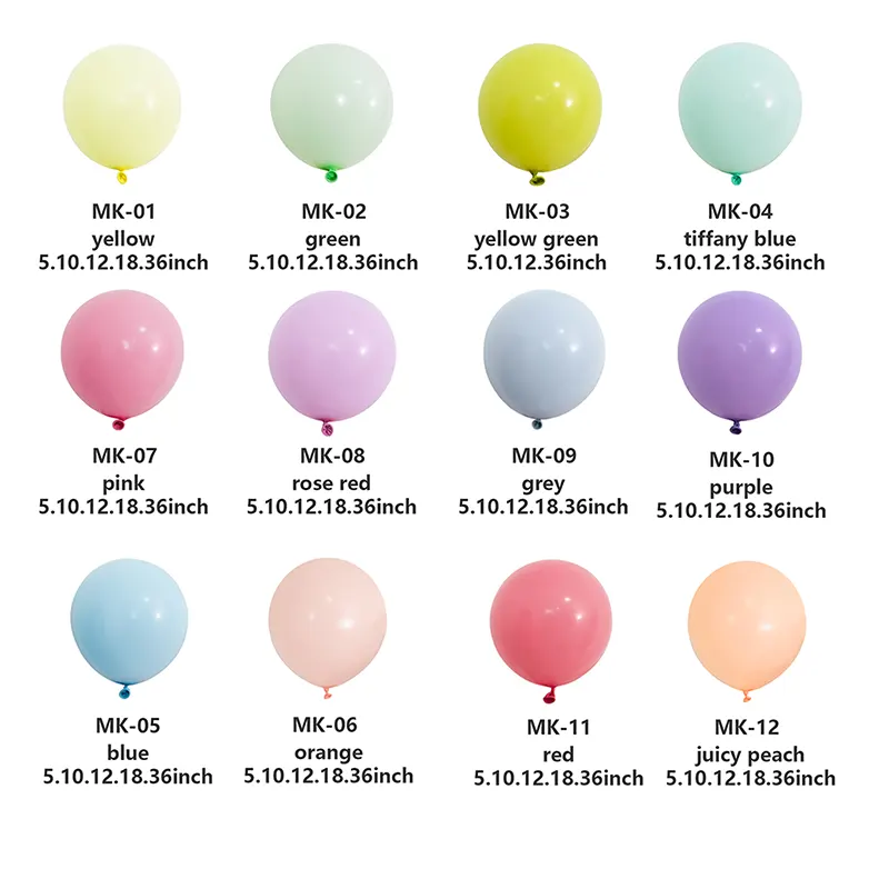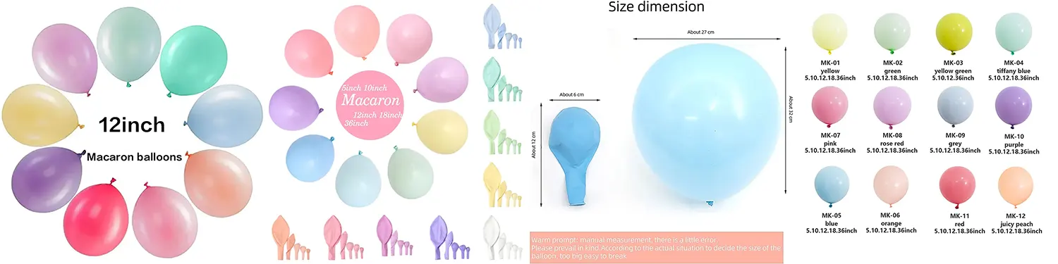Detaljerede data fra 12 tommer Macaron Latex Balloons