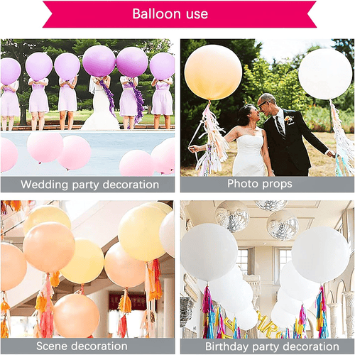 Mens du bruger en 24 tommer latexballon, foretrækker folk at fylde dem med helium og derefter binde nogle dekorationer under ballonen. Stilen på det vil være meget elegant og romantisk. De kan bruges som en god scene til at tage billeder. Ballonerne er super velegnede til bryllup, forlovelsesfest, fødselsdagsfest, middagsselskab og mange arrangementer.