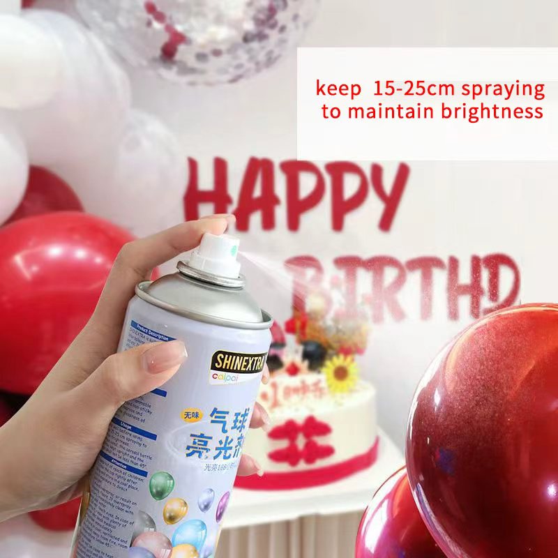 Balloon Oil Base Shine Spray: Velegnet til alle typer latexballoner (anbefales ikke til aluminiumsfolieballoner). Ideel til bryllupper, fødselsdagsfester, babybrusere, forretningsåbninger, vinduesskærme, ballonkæder, ballonbuer og mere.
