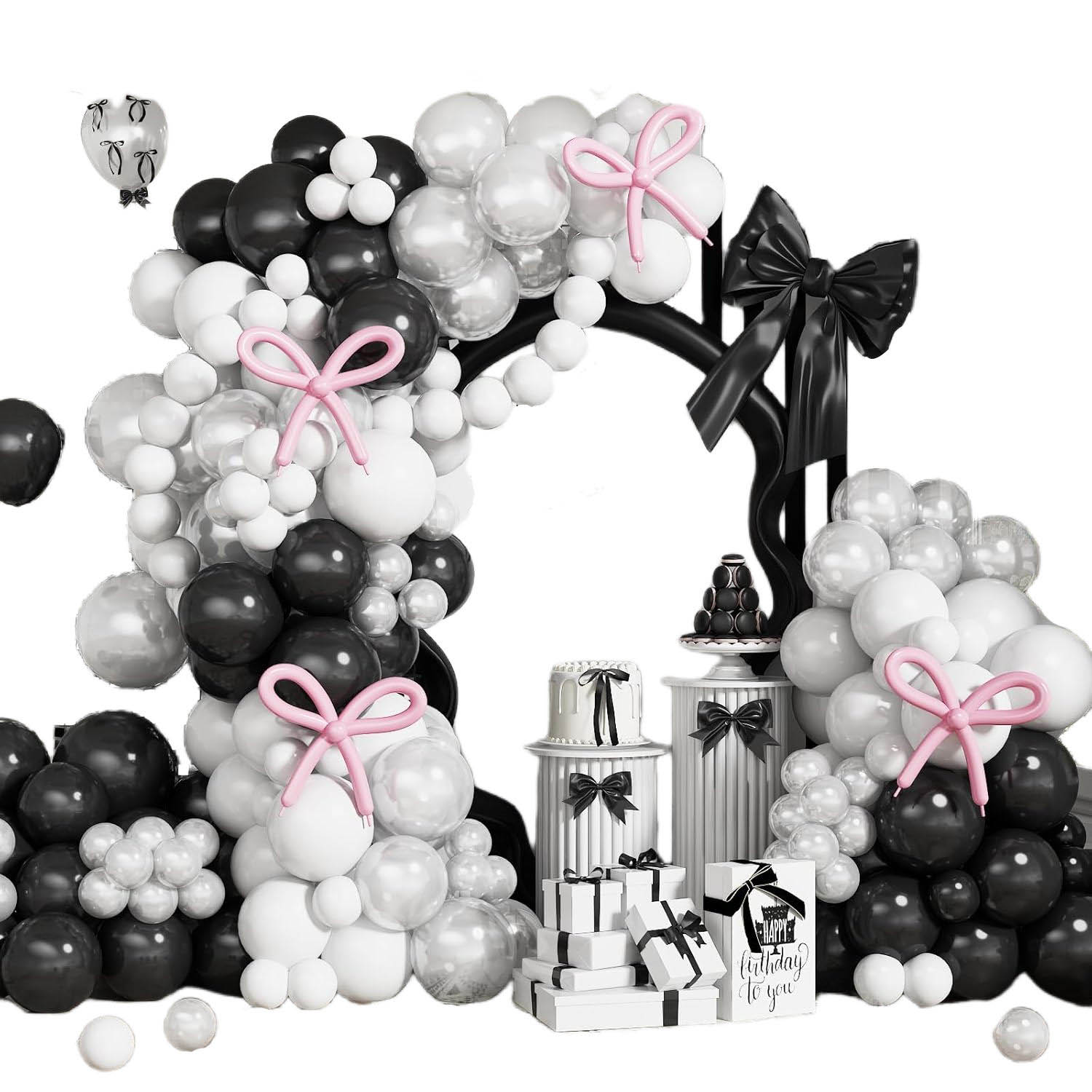 Denne Bow Balloon Arch Garland fås i øjeblikket i forskellige ballonfarver. Den nyeste hvide og sorte ballonbue -krans er et populært valg blandt kunder, da det er den mest populære farve. Den hvide og sorte ballonkransbue sætter parret smukt med en tillykke med fødselsdagen. Bue -accenterne forbedrer det overordnede fødselsdagsfestballonbue, der tilføjer et strejf af gnist og charme til dit parti.