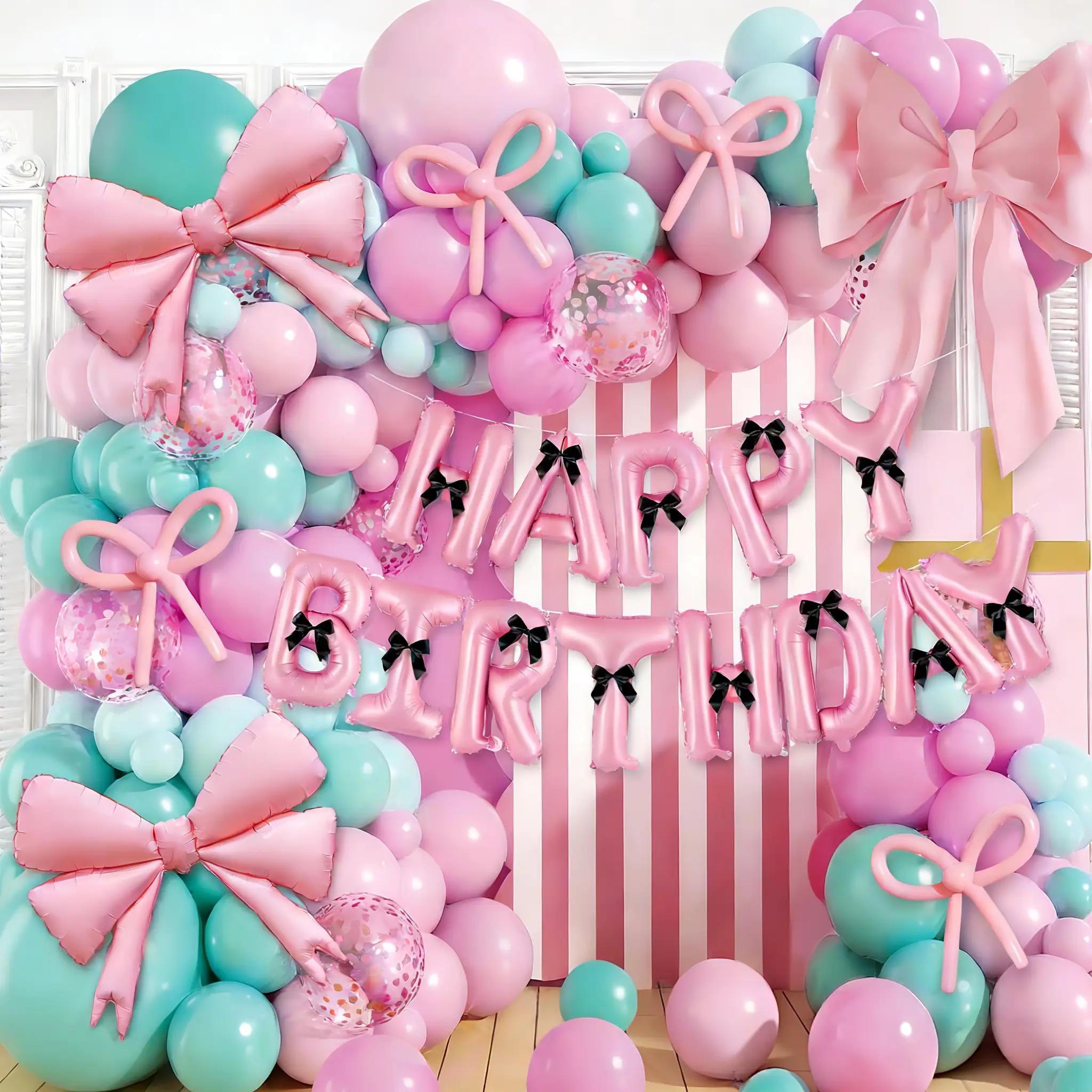 Som et nyt produkt anbefales ballonbuer med bue-tema stærkt. Den kombinerer på genial vis ballonernes luftighed med sløjfens delikatesse, hvilket skaber en produktform, der både er visuelt tiltalende og rig på følelsesmæssige udtryk. Den har tre farver, de er baby blå farve ballon bue kit, baby pink ballon bue kit og pink med tiffany blå bue kit.