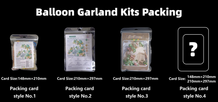 3. Ballontilbehør: I hele sættet fortæller du os det ballontilbehør, du vil tilføje, såsom bånd, bindeknude, pumpe, fiskeline, blomsterklemme, foliebanner, papirbanner, kagetopper, bordtøj, kulisse og så videre.