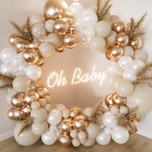 Denne champagnefarvede ballonbue er omhyggeligt dekoreret medlatex balloneri 5 tommer, 10 tommer og 12 tommer størrelser. De forskellige størrelser er arrangeret flot sammen, hvilket skaber en flot, tredimensionel effekt. Dette får hele buen til at se fuld og høj kvalitet ud. Den bløde champagnefarve giver den en elegant glans, og med sit enkle og stilrene design skaber den en yndefuld og romantisk stemning. Den er perfekt til avancerede fester, bryllupper eller begivenheder, og ser virkelig godt ud som midtpunktet.