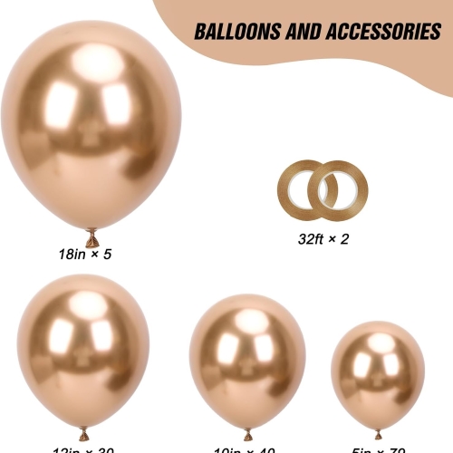 Champagneballonbuen indeholder mindst 100-150 højkvalitetsballoner i tilstrækkelig mængde til at skabe et smukt og fuldendt arrangement. Når den er samlet, skaber den et elegant og stemningsfuldt festmiljø. Du kan se fra billedet nedenfor.