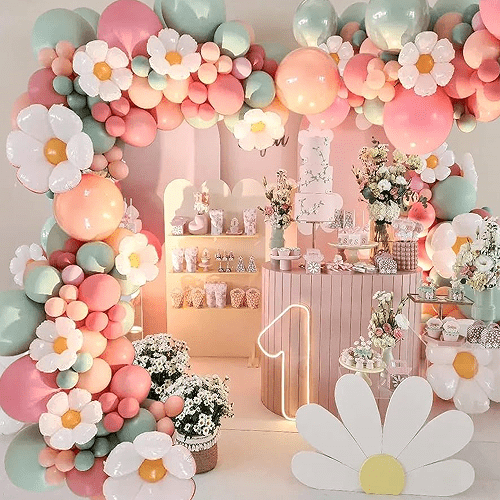 Fødselsdagsfest: Daisy ballon guirlande kan bruges som baggrundsdekoration til fødselsdagsfester, velegnet til at arrangere i børns eller kvinders fødselsdagsfester, hvilket skaber en glad atmosfære.