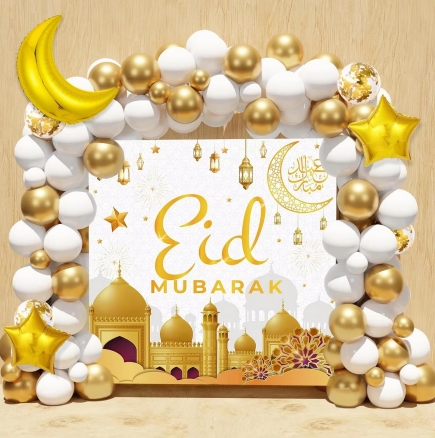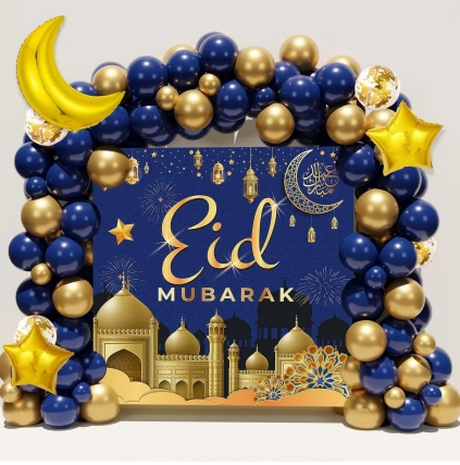 Det nyligt introducerede Eid al-Fitr Balloon Kit tilføjer baggrundsklud, dug og andre produkter til de tidligere grundlæggende reservedele. Baggrundskluden er designet med klassiske Eid al-Fitr-elementer, såsom forgyldt halvmåne, arabisk "Eid Mubarak" og Lonicera Japonica Interweave. Baggrundsfarven er blød hvid eller lys kamelfarve, som ikke kun bevarer den hellige følelse af festivalen, men også integrerer den varme atmosfære i familiens samling. Det hænges på stuevæggen, indgangen eller indkøbscentret aktivitetsområde, bliver det visuelle centrum for scenen uden kompliceret installation. Den nyligt tilføjede dug er lavet af oliefast og vandtæt PE-materiale med symmetriske geometriske linjer trykt på overfladen og fine kvaster, der er prikket på kanterne. Det er lagt på spisebordet, tilmeldingstabel eller madbås. Det kan ikke kun håndtere suppe- og dessertpletter i festen, men også dets festlige mønstre kan gentage med dekorationer som ballonkæder og flag, hvilket gør layoutet af hele lokalet mere integreret-fra ballonens krans i luften til beskrivelsesdaljerne på skrivebordet, hvert sted formidler genforeningen og glæden ved Eid al-fitr.