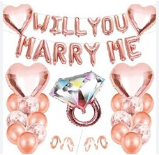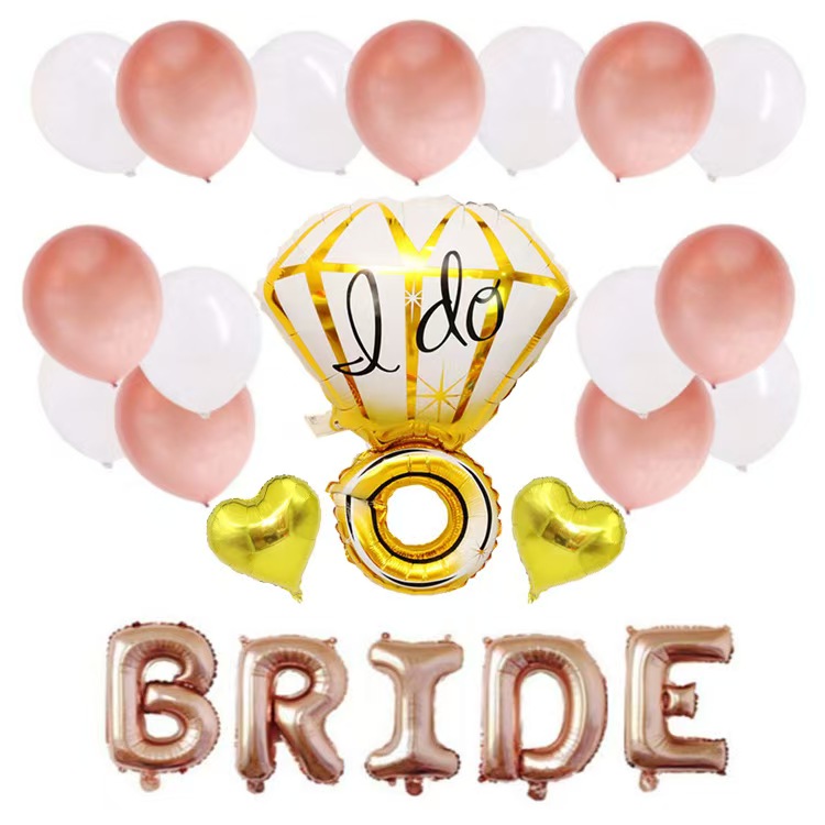 Dragtens stil er hovedsageligt lavet af diamantforlovelsesring folieballoner, matchet med stjernefolieballoner og temarunde balloner, og det overordnede match er enkelt og atmosfærisk. Samtidig understøtter den personlig tilpasning og kan justere typen og mængden af balloner efter behov, såsom tilføjelse af brevfolieballoner som I DO og MARRY ME for yderligere at styrke atmosfæren af bekendelse og frieri.