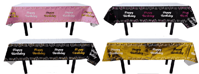 regnbuefarve, foliedug med tegneseriedyr og kagemønstre, velegnet til børns fødselsdagsfester; guld, sølv, laserfarve med stjerner og bogstavmønstre, velegnet til voksenfødselsdage, jubilæumsfester, veninders fester osv., kan arrangeres i familiens spiseborde, hotelfestborde, udendørs picnicborde og andre scener.
