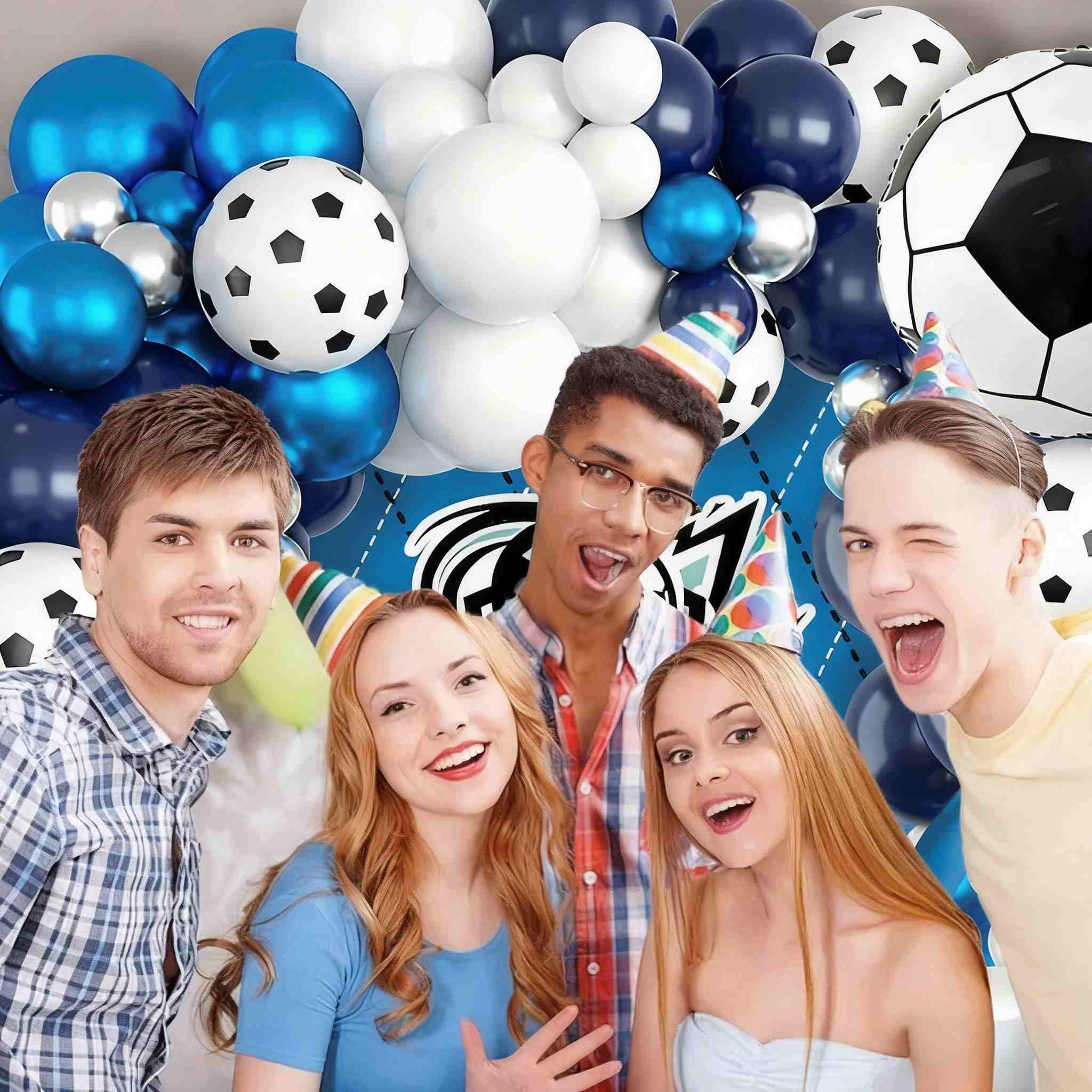 Hvad får du: Fodbold fødselsdagsballonbuesæt til fødselsdag, babyshower, julepynt og jubilæumsdekoration i ét helt sæt.
