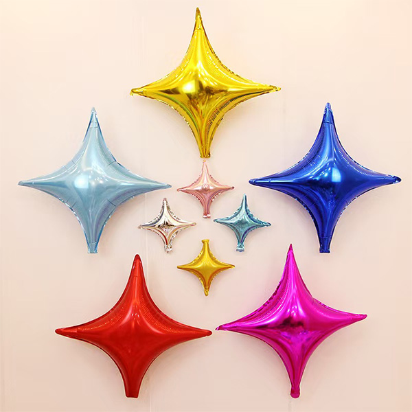 Når fire vinkelstjerne folieballoner bruges med latexballoner, kan de perfekt kombinere fordelene ved begge dele. Latex -balloner har selv fordelene ved blød struktur og rige farver, mens folieballoner er mere moderne og ædel. Ved at kombinere disse to typer balloner kan ikke kun forbedre den samlede dekorative effekt, men også give partiet flere lag.