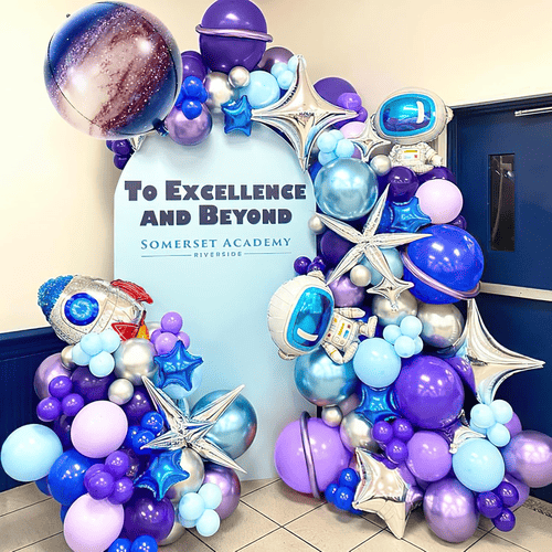 Skræddersyet galaksetema ballonkrans er meget nemt hos NiuN®. Uanset om det er til balloner eller til pakke, for balloner, kan størrelser og farver ændres. Ud over ballonerne kan pakkeposen til ballonsættet også tilpasses.