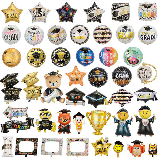 For at fejre afslutningsceremonien for flertallet af studerende introducerede vores fabrik specielt enafgangsfolieballon. Denne folieballon anvender avanceret produktionsteknologi og er lavet af højkvalitets aluminiumsfoliemateriale. Denne afgangsfolieballon har en række forskellige stilarter, med stjerner, runde trykte folieballoner, afgangshætter, trofæer og andre folieballoner. Det passer ikke kun til eksamenstemaet, men matcher også de lyse farver, som kan tilføje en festlig atmosfære og er dybt elsket af folk. Disse folieballoner til afgangsfesten er designet med selvlukkende ventiler for at sikre en tæt eller svævende effekt. Der er også et lille hul i toppen af ballonen, så den nemt kan seriekobles og klæbes eller hænges på væggen. For at imødekomme alle kandidaters behov, leverer vores fabrik også dette lille sæt afgangsfolieballon, ballonguirlande med gradueringsfolieballon osv., som kan opfylde dine behov for forskellige spillestedsstørrelser og er nødvendigt tilbehør til udsmykning af gradueringsceremonier og hygge.