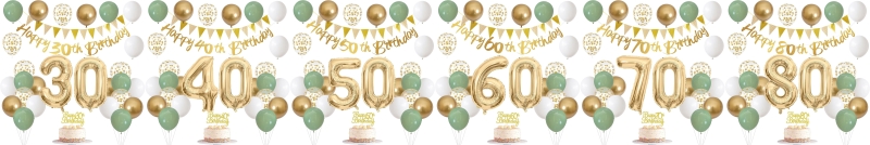 Produktbeskrivelse: Dennegrøn og guld farve dekoration ballon kiter lavet af12 tommer mat hvid farve ballon, 12inch metallisk guldfarve ballon, 12 tommer guld konfetti ballon, 12 tommer retro salvie grøn farve ballon,guld farve papir fødselsdag banner, guldfarvet kagetopper og40 tommer guldfarvet folie mylar nummer ballon. Kombinationen af grønne og guldfarver kan gøre din fest fuld af vitalitet og en følelse af sofistikering. Det er det gode valg til dine fester.