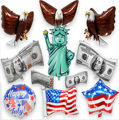 Vores glade 4. juli-ballon tager det amerikanske flags klassiske røde, hvide og blå farver som kernefarvematch. Farvemætningen genskaber nøjagtigt de primære farver i det nationale flag. Det er lyst og ikke blændende og kan indstilles til alle slags dekorationsstile til Independence Day.