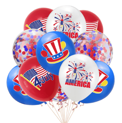 Happy 4th of July balloner er lavet af sikre og miljøvenlige materialer, latexballoner er 100% naturlig latex, og folieballoner er fødevaregodkendte foliefilm.