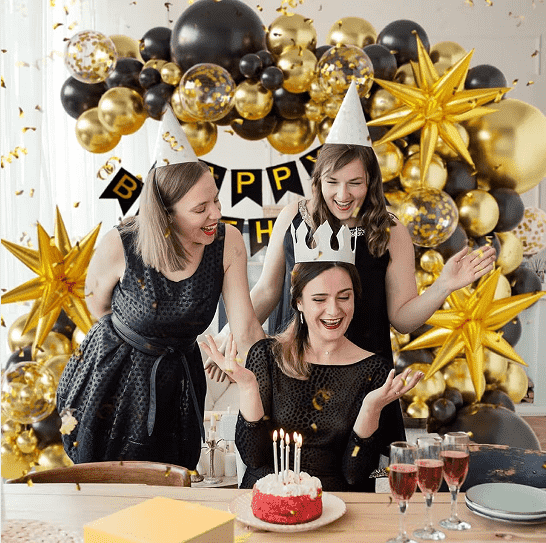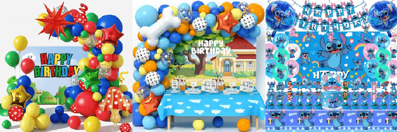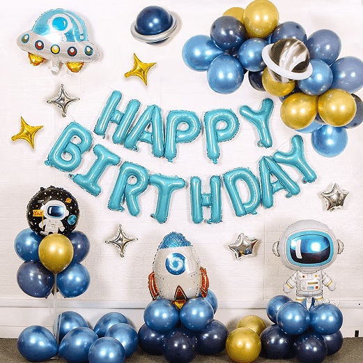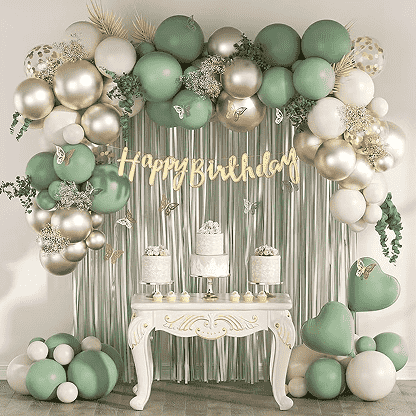 Den grundlæggende stil er en Happy Birthday latex ballon i samme eller komplementære farve, medTillykke med fødselsdagen brev folieballonerellernummer folie balloner. Klassiske stilarter har Macaroon pulver gel ballon pink Happy Birthday folie ballon, sort latex ballon guld nummer folie ballon. Latexballoner kan spændes ind i en ballonkæde og hænge på væggen eller loftet, med folieballoner som det visuelle centrum og en lille smule båndudsmykning for hurtigt at skabe en enkel og struktureret feststemning.
