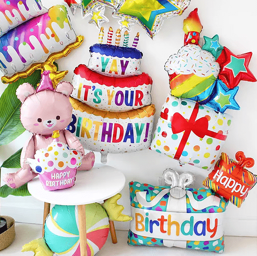Tillykke med fødselsdagen folieballon har en stærkere visuel indvirkning og følelse af højt niveau, produktet er lavet af højglans aluminiumsfoliemateriale, overfladen præsenterer en metallisk tekstur, god reflekterende effekt, skinner under lyset, kan blive festens fokus. De klassiske modeller er det fulde sæt af Happy Birthday-bogstavballoner og Happy Birthday-nummerballoner som "18", "30" og "60". Modelleringsmodellerne omfatter kager, kærlighed, stjerner, tegneseriefigurer, dyr osv., som passer til forskellige temabehov hos børn og voksne.