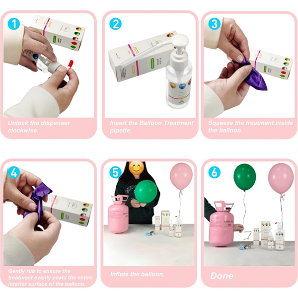3. Brug den opgraderede formel for at sikre, at dannelsestiden for limfilmen inde i ballonen er kortere. Det blev designet specielt til at udvide den flydende tid for heliumballoner i varmt og fugtigt miljø.