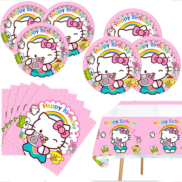 3) Service: Hello Kitty service kan stadig kombineres med de unikke mønstrede designs af de pink og hvide festartikler for at skabe en sød atmosfære til din fest. Alle produkter er meget holdbare, farvestrålende og har en følelse af høj kvalitet.