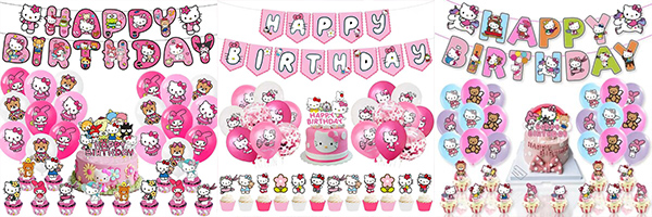A: Hello Kitty-dekorationerne er alsidige og kan nydes af alle aldersgrupper, fra børn til voksne. Det festlige design og farveskema appellerer til forskellige generationer, hvilket gør det perfekt til familiesammenkomster, venners fester eller endda kontorfester. For eksempel kan børn nyde de farverige pom poms, mens voksne vil sætte pris på de elegante søde designs.