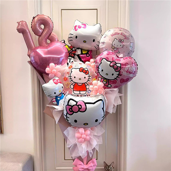Hello kitty er en sød katte tegneseriefigur, der er fejet rundt i verden. Hello kitty-tema folieballonen fremstillet i Kina er lavet af højkvalitets aluminiumsfoliemateriale, som har god tætningsevne og ikke er let at lække. Denne folieballon har mere end 30 stilarter at vælge imellem, inklusive runde folieballoner og tredimensionelle tegneseriefigurer folieballoner. Kombinationen af to folieballoner med hello kitty-tema kan opfylde behovene ved forskellige lejligheder. For eksempel, til familiesammenkomster, fødselsdagsfester, firmaarrangementer eller andre festlige lejligheder, kan disse folieballoner tilføje en glædelig atmosfære til dit arrangement.