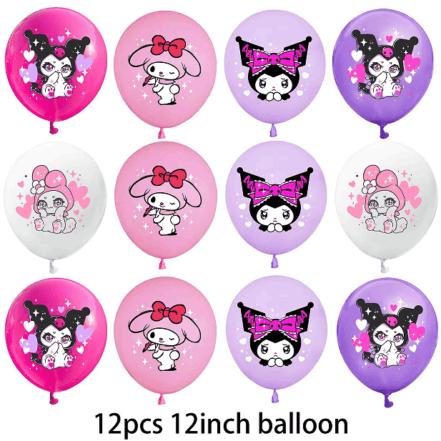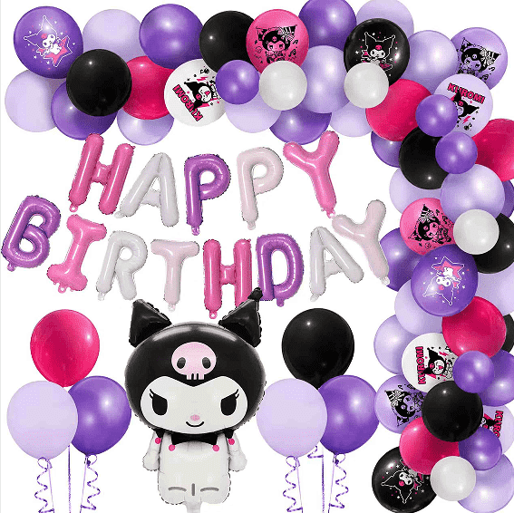 1. Custom Kuromi Party Balloon: Sørg for folieballontilpasning (mønster og form), latexballonudskrivning og stildesign af ballon og kranssæt.