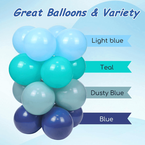 Ocean party ballon bue kit består hovedsageligt aflatex ballonerog oceanfolieballoner. For at imødekomme havtemaet er latexballonerne hovedsageligt i forskellige blå farver. Størrelserne på dem er 5 tommer 10 tommer 12 tommer og 18 tommer, de forskellige størrelser kan lave smukke og attraktive lag.