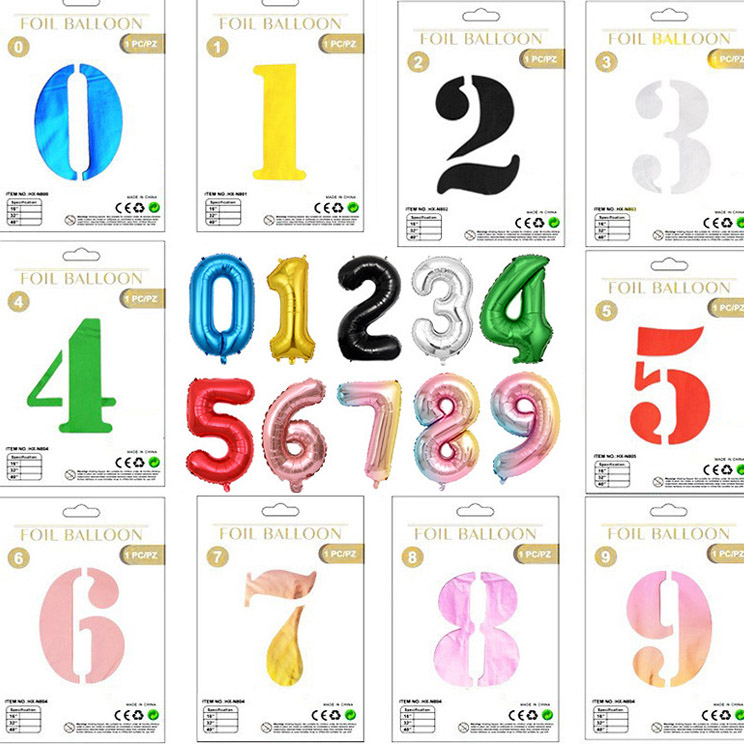 Nummer folieballoner: Fås i størrelser på 16 ", 32" og 40 ".