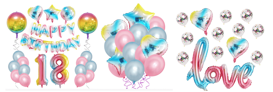 Farveaspekt: Regnbuenummerfolieballon ved hjælp af gradientopblomstring, farvesyning, regnbuestriber og andre processer, der viser et rigt udvalg af farveeffekter. Nogle produkter er baseret på syv grundlæggende farver rød, orange, gul, grøn, blå, indigo og lilla. Gennem den naturlige overgangs gradvise ændringsteknologi skaber de en gennemsigtig tekstur som regnbue efter regn. Nogle produkter bruger farvekollision med høj mætning, såsom pink og blå splejsning, gult og grønt ekko, der danner en stærk visuel effekt og lyser feststemningen op. Disse farvedesigns er i overensstemmelse med offentlighedens psykologiske sammenslutning af skønhed og held, symboliseret af regnbuen, og kan også tilpasses til feststile med forskellige temaer.