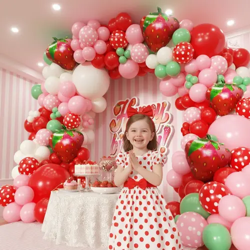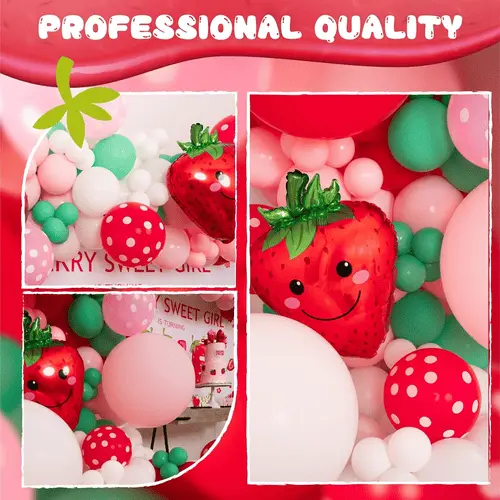 Ballonguirlande med jordbærtema medfølgerhøjkvalitets latex ballonog folieballon. Med jordbærets søde stil er den elsket af mange kunder over hele verden. Således har de lavet en god salgspræstation for alle vores kunder.