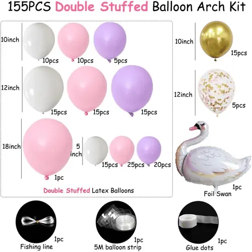 Vi tilføjer forskelligt tilbehør til Swan ballonbue. Herunder priklim, ballonstrimmel og bånd. Ud over det kan vi også tilføje det andet tilbehør, som du har anmodet om.