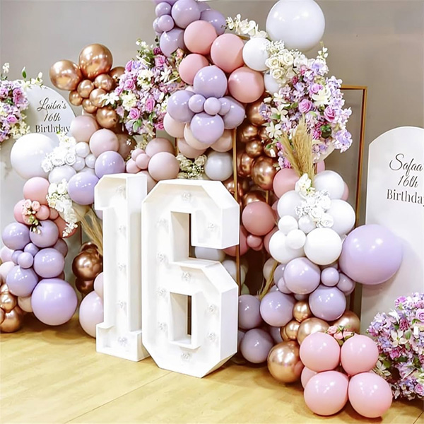 Ballonguirlande med 16 led lys:Vores fabrik lancerede også en ballonguirlande med 16 år gammelt led-lys. LED-tallamperne er lavet af miljøvenlige materialer ABS og LED for at give lyse og varige lyseffekter. LED-lys med tal og bogstaver, der kan lyse i mørke. Den bløde belysning skaber en afslappet og behagelig atmosfære og tilføjer en unik charme til ethvert rum. De kan vises uafhængigt eller hænges på væggen, på mantelen eller placeres i receptionen til brug under begivenheder eller festligheder. LED-tallys med ballonguirlandebuer, velegnet til at skabe en fordybende feststemning, er en vigtig rekvisit til at tage unikke og uforglemmelige billeder, hvilket tilføjer en uforglemmelig følelse af ceremoni til din 16-års fødselsdag.